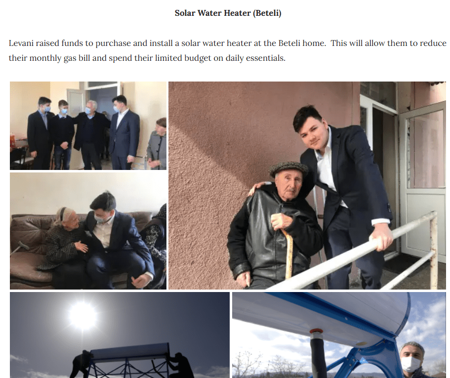 The Foundation completed the installation of a solar water heater for a home for the elderly in the Kakheti region. This project was featured on local television, and more details can be found on our Facebook page.