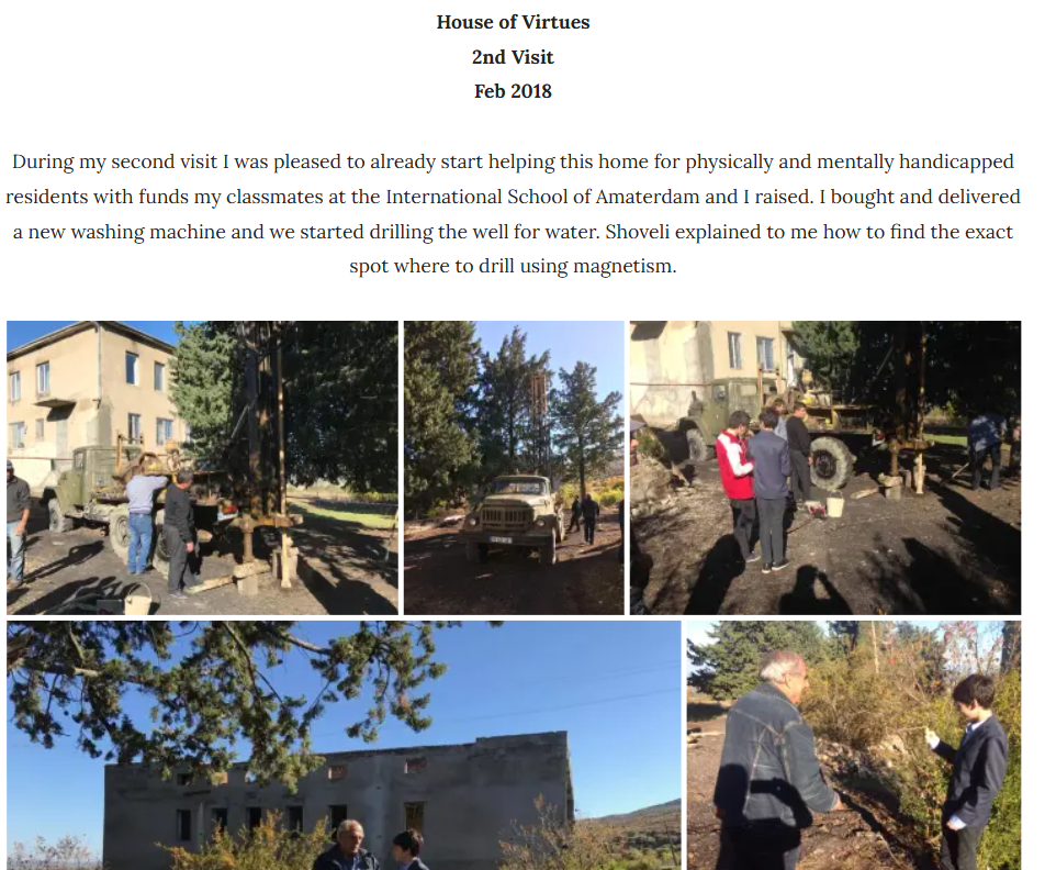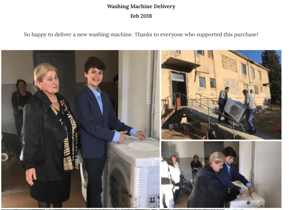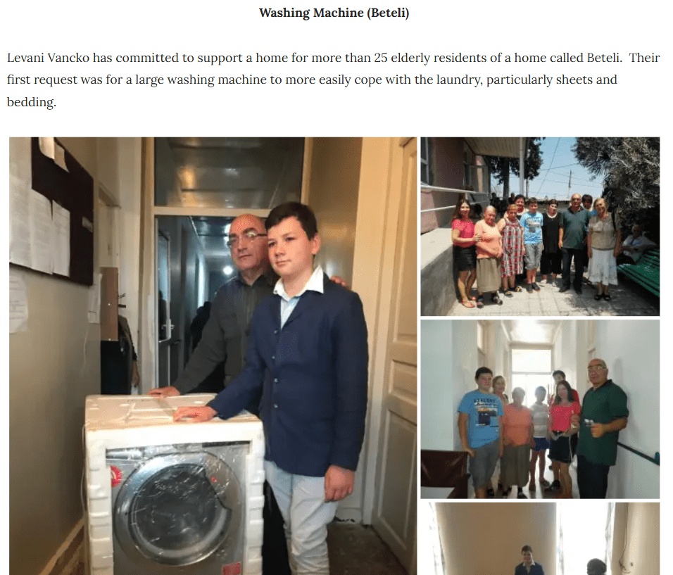 Several major projects were completed in 2018, most notably drilling a water well and installing the necessary equipment to provide an independent water supply to Satnoebi’s Saxli. Additionally, we delivered several items to a home for the elderly in the Kakheti region, fulfilling their specific requests through fundraising and donations. The items provided included: